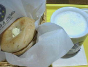肝心のベーグルはなんだか妙にやわらかくて、ベーグル特有のあの噛み応えがちっともありません。最大限に誉めても、モチモチしてる、ってだけ。
